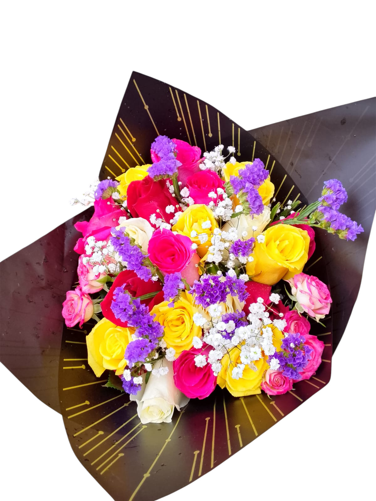 A lush celebration of colors, textures, and fragrance, this bouquet combines assorted roses with hand-picked floral fillers for a full, vibrant arrangement. Each bloom is carefully selected for freshness, elegance, and visual harmony, creating a bouquet that feels abundant, thoughtful, and joyous.